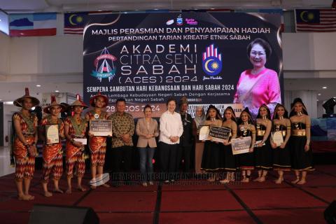 Majlis Perasmian dan Penyampaian Anugerah Pertandingan Akhir Tarian Etnik Kreatif Sabah, Akademi Citra Seni Sabah (ACES) 2024 yang telah disempurnakan oleh Yang Berhormat Datuk Christina Liew, Menteri Pelancongan, Kebudayaan dan Alam Sekitar Sabah pada 28 Ogos 2024, bertempat di Suria Sabah Shopping Mall.