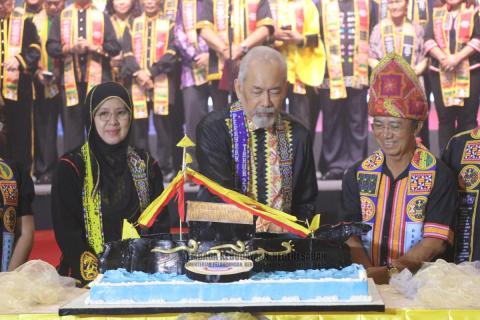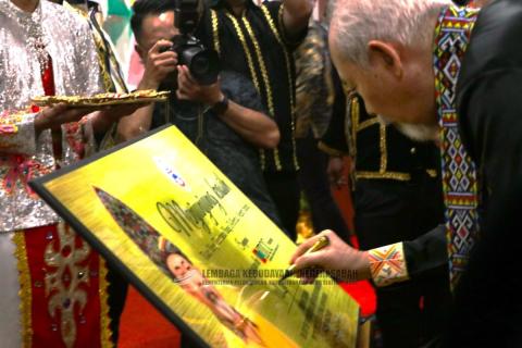 The ceremony was completed by His Excellency Tun Datuk Seri Panglima (Dr) Haji Juhar Bin Datuk Haji Mahiruddin who is in the forefront of Sabah State. The ceremony was enriched again by the presence of Deputy Chief Minister, YB Datuk Seri Panglima Dr. Joachim Gunsalam representing the Chief Minister of Sabah, His Excellency Datuk Seri panglima Haji Hajiji bin Haji Noor, Minister and Assistant Minister of Sabah Cabinet, YBrs. Datuk Josie Lai, Permanent Secretary of the Ministry of Tourism, Culture and Environment of Sabah, YBhg Tuan Dikin Bin Haji Musah, Chairman of the Sabah State Cultural Institute, YBrs. Tuan Mackey Apison, General Manager of the Sabah National Cultural Institute, Members of the Board of Directors of the Sabah Regional Cultural Institute, Presidents- presidents and Members of Ethnic Associations.